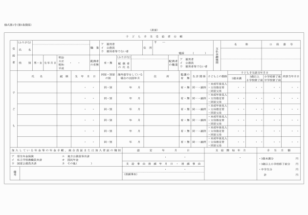 (1) 受給者台帳(一般受給者用)に新たに支給対象となった子どもの氏名等および改定後の支給額を記入すること。