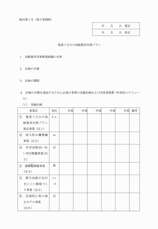 (1) 集落ぐるみの鳥獣被害対策プラン策定事業(以下「プラン策定事業」という。)