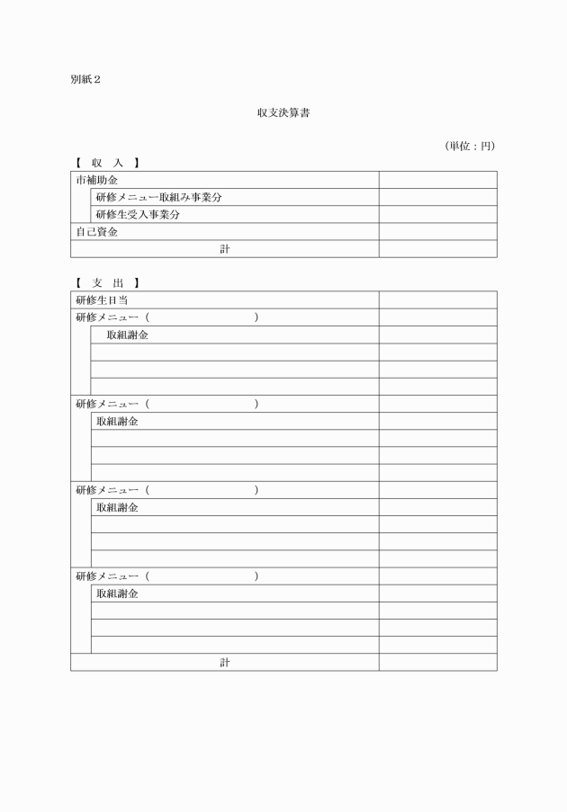 研修受入事業 | 第4条に規定する市内の農業法人等 | 研修メニュー取組事業 研修生に対して技術・経営ノウハウ等を習得させるために行う研修経費、農業研修に要する謝金、図書教材費、農業資材費等で市長が適当と認めるもの | 定額 (1メニュー当たり50,000円以内) | 取組謝金は1メニュー当たり20,000円を上限とする。 |