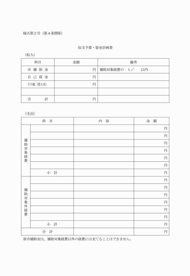 (1) 収支予算・資金計画書(様式第2号)