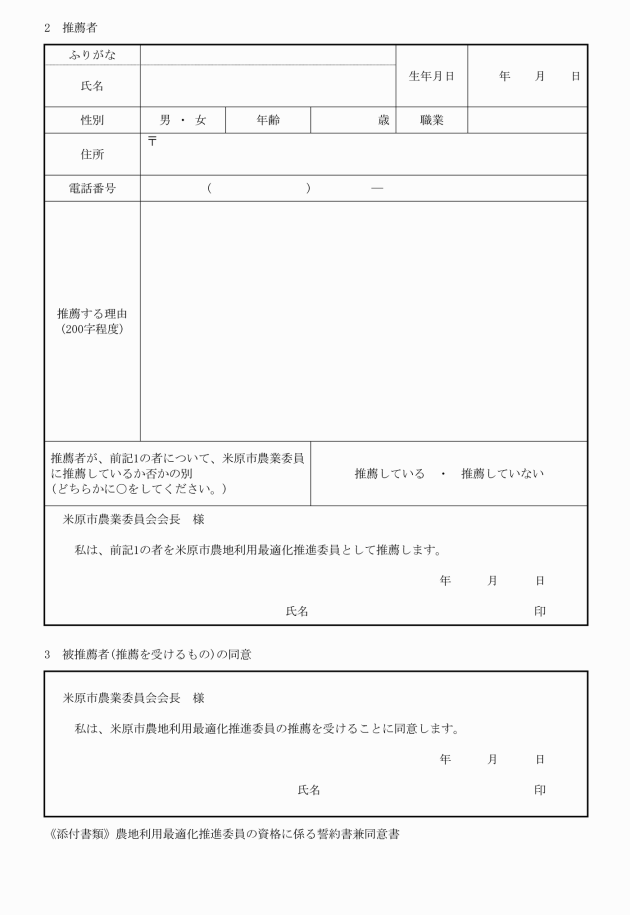 (2) 農業者の組織する団体からの推薦