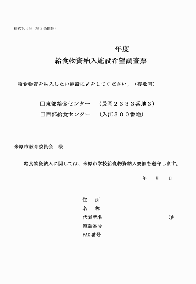 (4) 給食物資納入施設希望調査票(様式第4号)