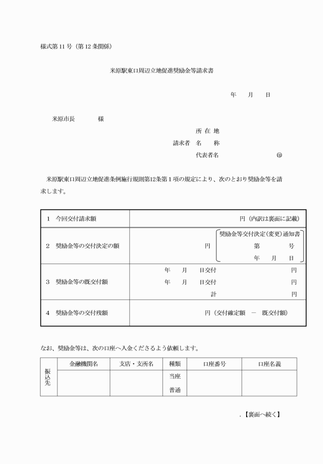 ○米原駅東口周辺立地促進条例施行規則