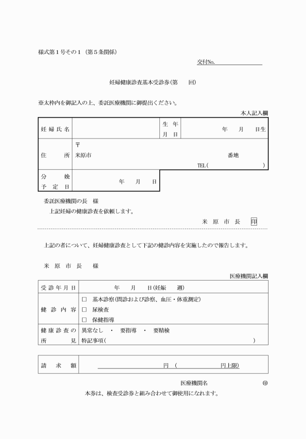 ○米原市妊産婦健康診査検査事業実施要綱