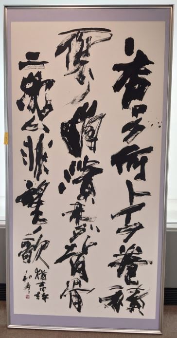 全国的にコロナ緊急事態が叫ばれる中、芸術はコロナに負けないとの信念で例年通りされることにまずは感謝申し上げます。さて、やや出品数は減じたものの、バラエティに富んだ力作揃いで、大変見応えのある展示となると思います。書は文字を素材としますが、決して「読む」だけのものではありませんし、上手下手を競うものでもありません。墨と筆で書くことは一期一会の線を追求することです。そんな線の構築による造形芸術という側面も強調したいと思い審査に当たりました。